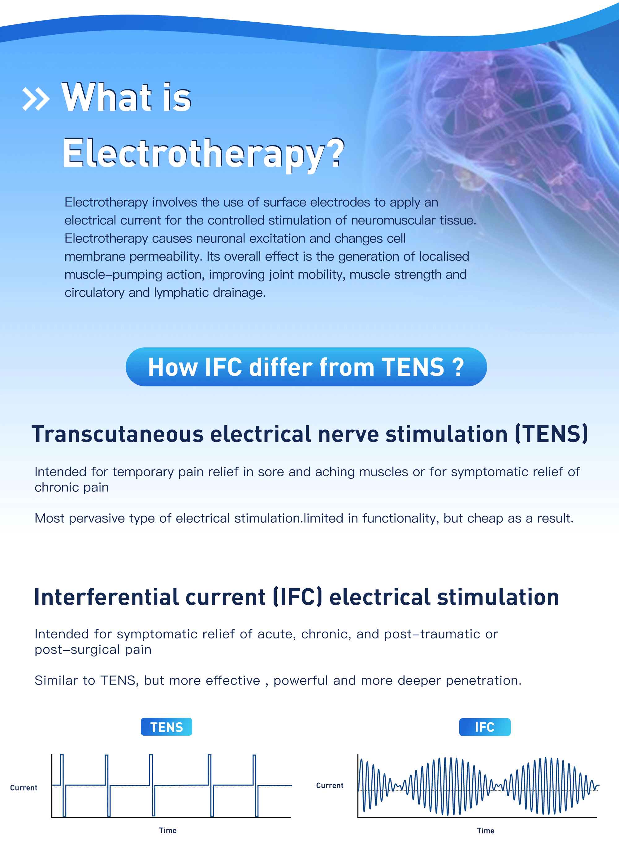 Reduces Swelling (Interferential Therapy) - Promotes lymphatic drainage.
